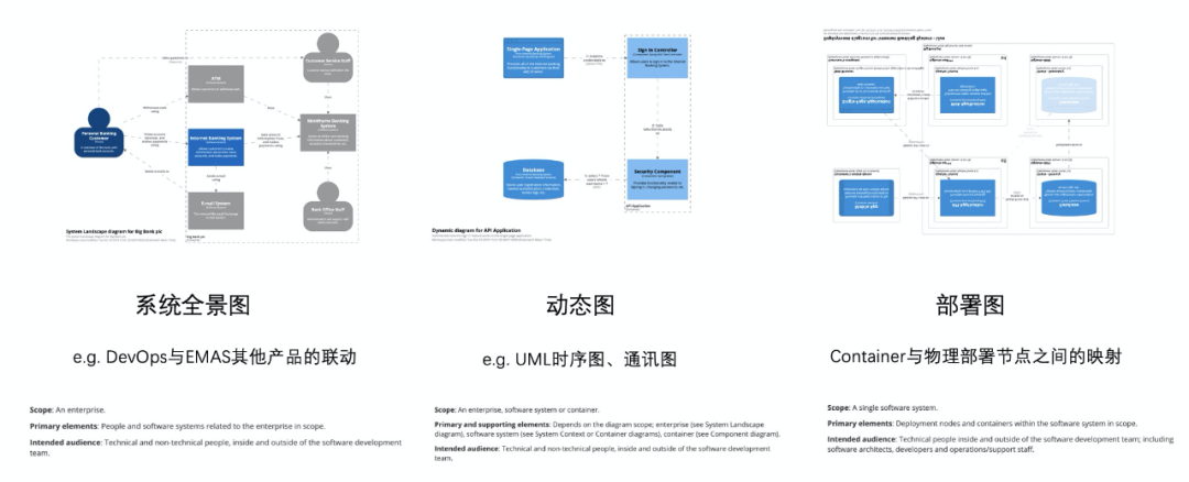 结合了这些补充图后的 C4 模型,才是可以全面与立体地描述出软件架构方方面面的完全体架构制图方法。