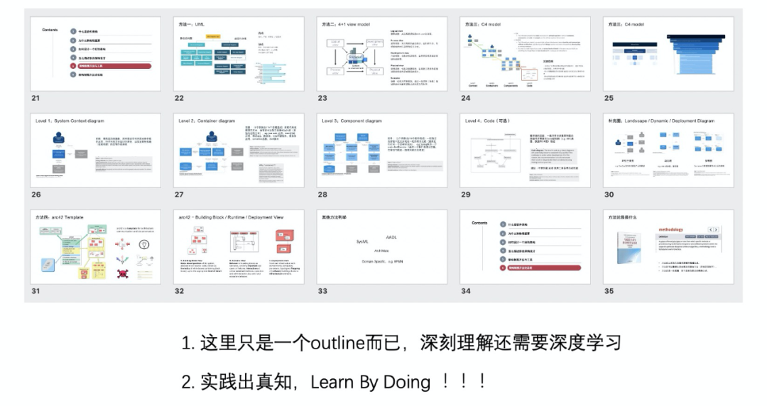 有了良好的架构设计,万里长征之路就已经走了一大半。就像是青年导演第一次遇上好剧本,心潮澎湃两眼放光,仿佛已经预见了电影上映后的票房盛况。当然,剩下的一小半路,并不会如想象中那么平坦 —— 同样的剧本,不同导演拍出来会有质一样的区别。好的“最佳导演”,即使面对不是“最佳剧本”的剧本,也有能力拍出“最佳影片”。同样,好的架构师,也应该有能力描述好一个不错的架构设计;即使做不到为精彩的内容加分,也不应该因为形式上没描述好而丢分,否则就会像高考作文丢了卷面分一样憋屈和心酸。